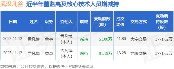 武汉凡谷:11月12日高管孟凡博减持股份合计142.19万股