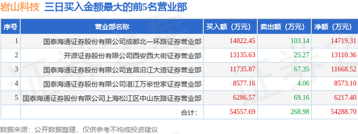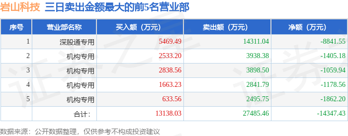 1月6日岩山科技(002195)龙虎榜数据:游资消闲派、上海中山东路上榜