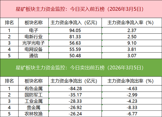 板块资金流出方面,有色金属板块主力资金净流出居首。