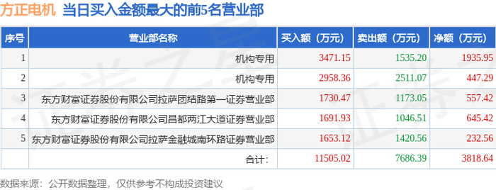 10月31日方正电机(002196)龙虎榜数据:机构净买入2383.24万元