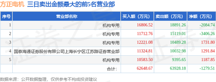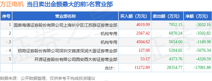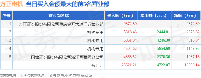 11月12日方正电机(002196)龙虎榜数据:游资章盟主、涪陵广场路上榜