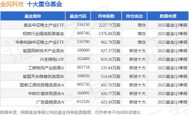 根据2025基金Q3季报公募基金重仓股数据,重仓该股的公募基金共103家,其中持有数量最多的公募基金为嘉实基金的嘉实中证稀土产业ETF。嘉实中证稀土产业ETF目前规模为76.48亿元,最新净值1.7734(12月24日),较上一交易日上涨0.54%,近一年上涨66.83%。该公募基金现任基金经理为田光远。田光远在任的基金产品包括:嘉实中证软件服务ETF,管理时间为2021年6月4日至今,期间收益率为-20.25%;嘉实中证电池主题ETF,管理时间为2021年7月13日至今,期间收益率为-16.4%;嘉实中证稀土产业ETF联接A,管理时间为2021年8月3日至今,期间收益率为22.07%。