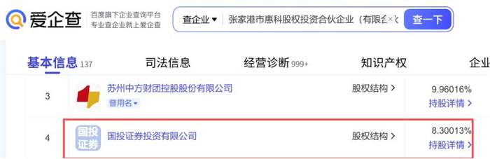 中科宇航参股方:嘉兴敏新基金持有中科宇航2.2568%的股权,而张家港市惠科股权基金持有嘉兴敏新基金61.81257%的股权。国投资本持有家港市惠科股权基金8.30013%的股权。国投资本则间接持有中科宇航约0.12%的股权。