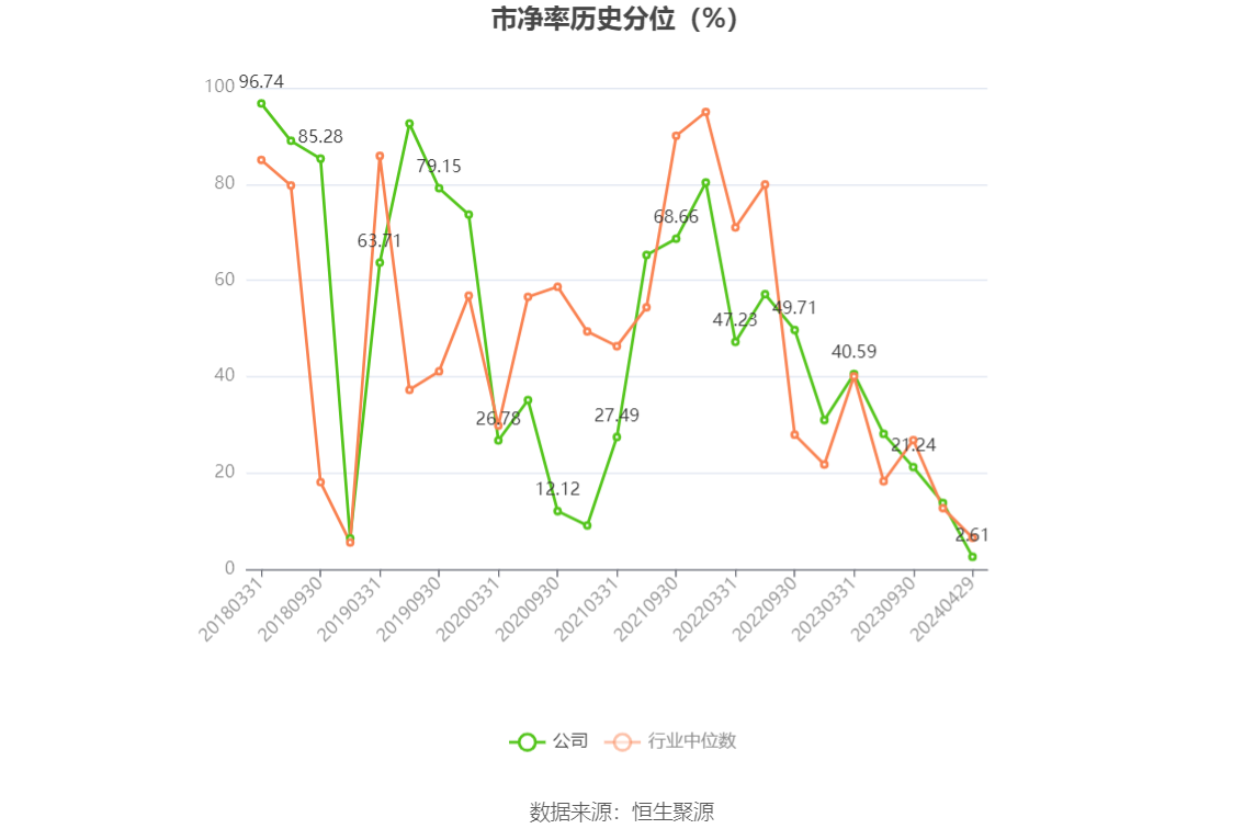 市盈率为负时,不显示当期分位数,会导致折线图中断。
