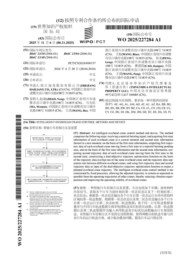 海亮股份公布国际专利申请:“智能行车控制方法及装置”