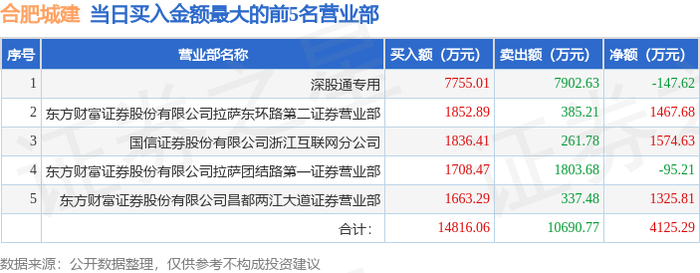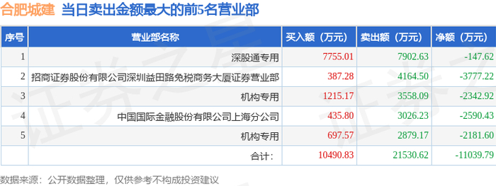 1月5日合肥城建(002208)龙虎榜数据:机构净卖出4524.52万元,北向资金净卖出147.62万元