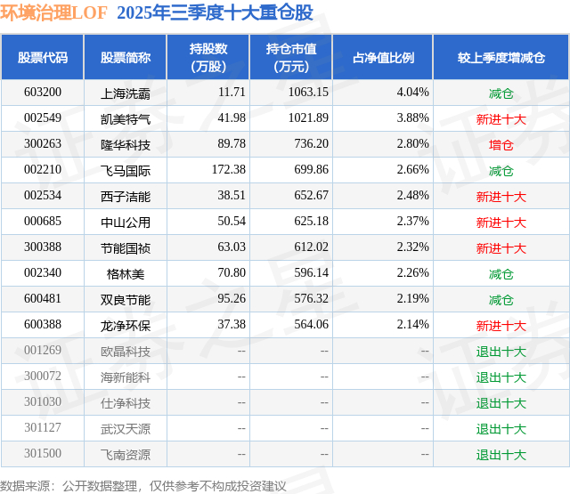 环境治理LOF的前十大重仓股如下: