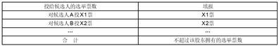 累积投票制下投给候选人的选举票数填报一览表