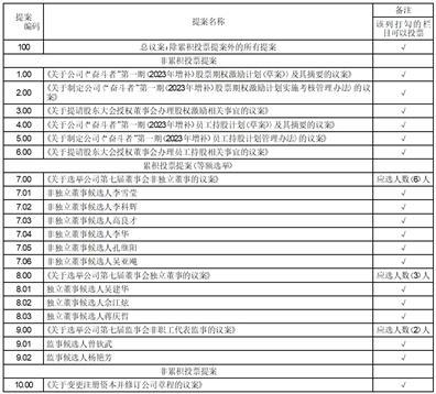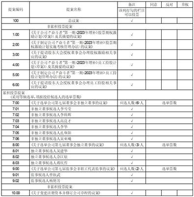 5、议案7.00、议案8.00、议案9.00采用累积投票制等额选举方式,应选举非独立董事6人、独立董事3人、非职工代表监事2人,股东所拥有的选举票数为其所持有表决权的股份数量乘以应选人数,股东可以将所拥有的选举票数以应选人数为限在候选人中任意分配(可以投出零票),但总数不得超过其拥有的选举票数。