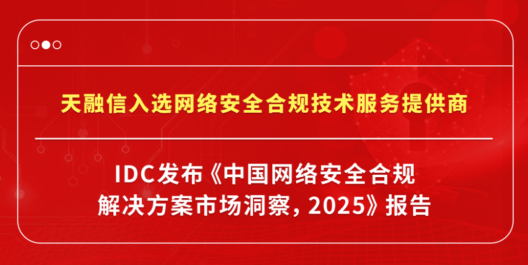 近日,IDC发布《中国网络安全合规解决方案市场洞察,2025》报告。天融信凭借全面的产品、服务体系与完备的解决方案,成功入选技术服务提供商,充分体现了市场对天融信安全合规技术能力的高度认可。