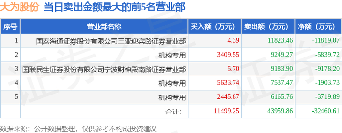 11月11日大为股份(002213)龙虎榜数据:游资佛山系上榜