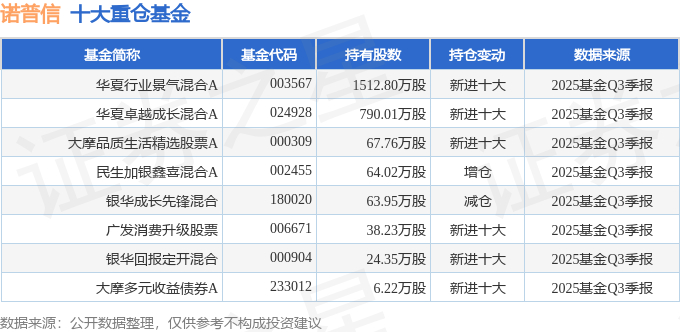 持有诺普信最多的基金为华夏行业景气混合A,目前规模为89.72亿元,最新净值4.9154(10月29日),较上一交易日上涨1.53%,近一年上涨58.48%。该基金现任基金经理为钟帅。