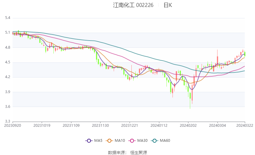 数据统计显示,江南化工近三年营业总收入复合增长率为31.42%,近三年净利润复合年增长率为20.05%。