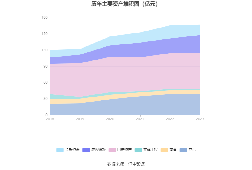 资产重大变化方面,截至2023年年末,公司应收账款较上年末增加22.61%,占公司总资产比重上升3.56个百分点;货币资金较上年末减少18.85%,占公司总资产比重下降2.83个百分点;其他非流动资产较上年末增加25.46%,占公司总资产比重上升0.60个百分点;固定资产较上年末减少0.31%,占公司总资产比重下降0.51个百分点。