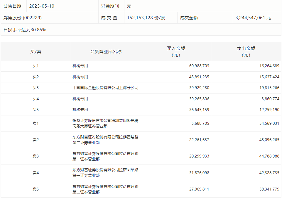 龙虎榜 | 鸿博股份今日涨1.02%,4家机构专用席位净买入1.35亿元