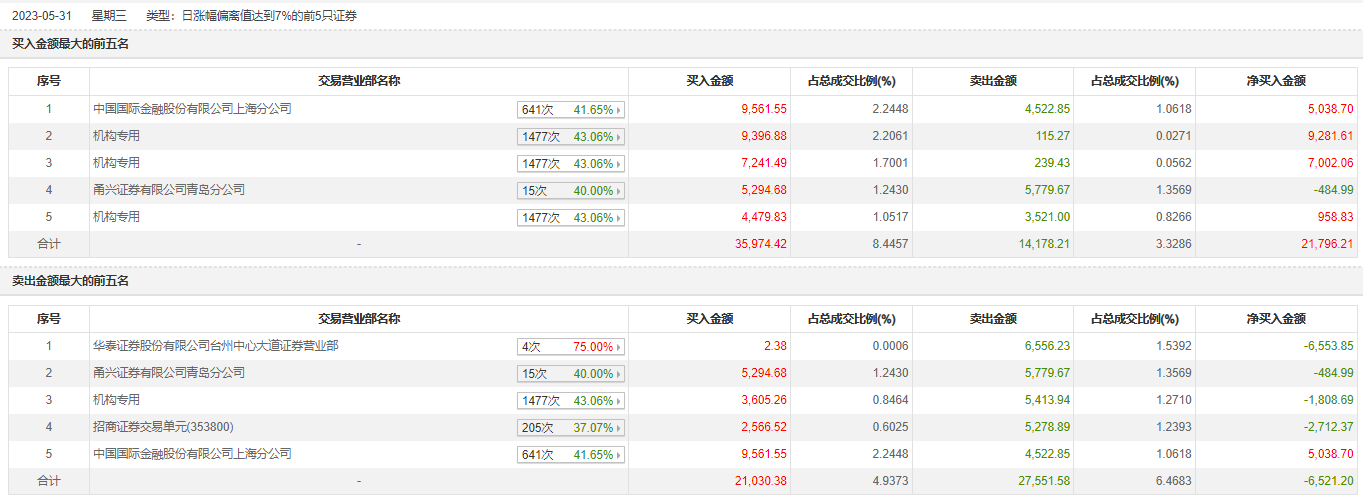 具体来看,机构买入2.47亿元,卖出9289.64万元,合计净买入1.54亿元。此外,知名游资现身龙虎榜,中国国际金融上海分公司、甬兴证券有限公司青岛分公司分别买入9561.55万元、5294.68万元;方新侠(华泰证券台州中心大道证券营业部)、甬兴证券有限公司青岛分公司分别卖出6556.23万元、5779.67万元。