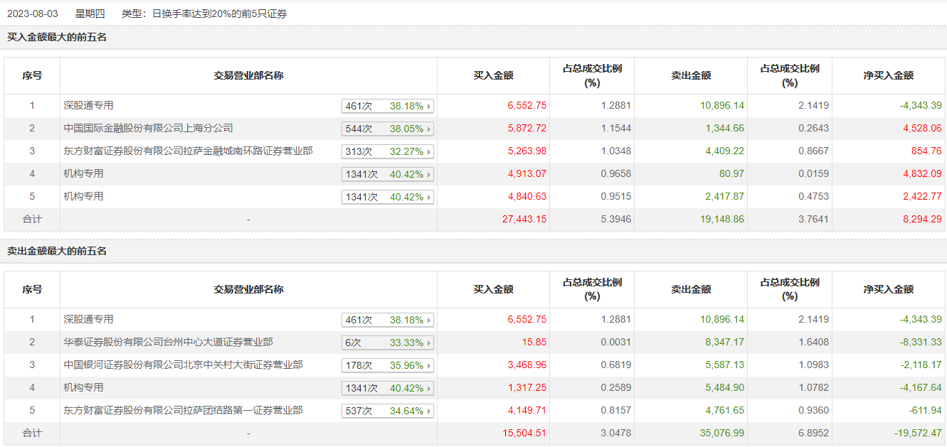 具体来看,机构买入1.11亿元,卖出7983.73万元,合计净买入3087.22万元。此外,知名游资现身龙虎榜,深股通专用、中国国际金融上海分公司分别买入6552.75万元、5872.72万元;深股通专用、方新侠(华泰证券台州中心大道证券营业部)分别卖出1.09亿元、8347.17万元。