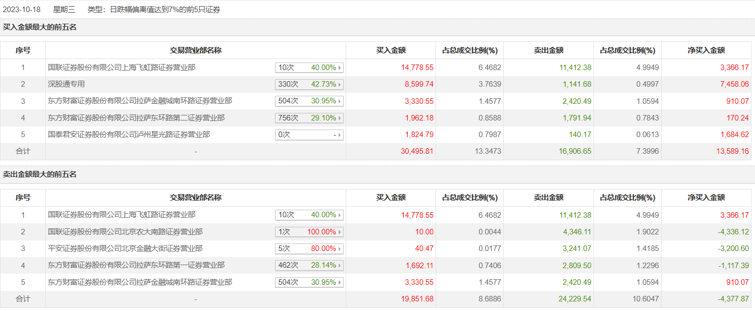 10月18日跌9.85%,成交额22.85亿元,换手率13.31%,盘后龙虎榜数据显示,深股通专用席位买入8599.74万元并卖出1141.68万元。