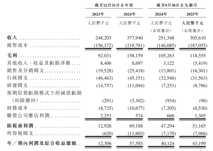 业绩方面,2023年、2024年以及截至2025年9月30日止九个月(报告期内),国医科技的收入分别为2.48亿元、3.78亿元及3.06亿元;净利润分别约为1230万元、5760万元及4320万元。