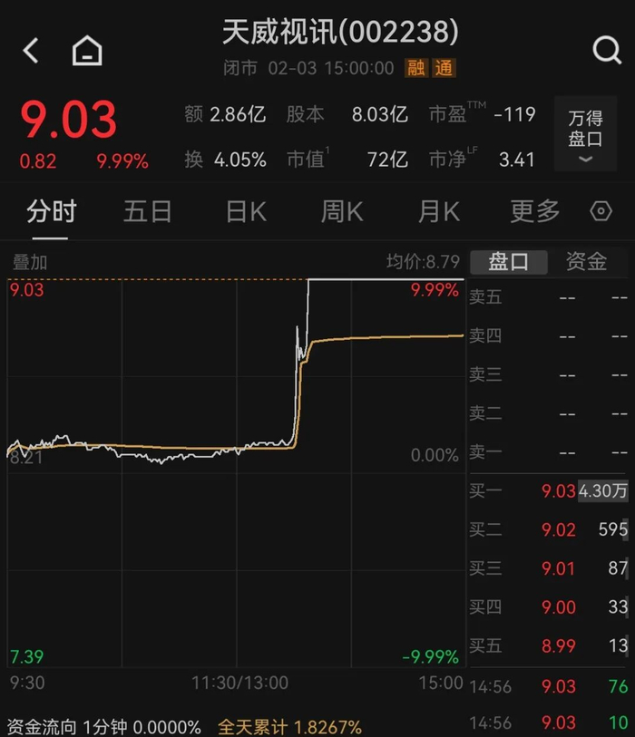 天威视讯午后直线涨停