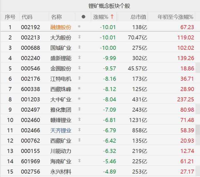 A股异动丨锂矿股连续第三日集体回调,盛新锂能等多股跌停