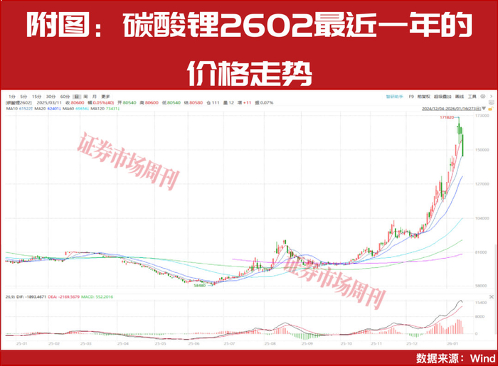 对于近期强势的碳酸锂,光大期货分析师展大鹏、王珩、朱希在1月14日研报中指出,“从目前的出口退税调整、终端强预期、电池厂‘反内卷’和正极材料上修排产来看,即便目前原材料价格大幅上涨可能会抑制终端需求,但这短期或较难证伪。同时,从下游低库存和中长期看多锂价的交易逻辑之下,我们认为即便跌价仍将出现备货需求和资金的投机需求,因此在需求没有证伪的前提下,总体表现价格易涨难跌。”