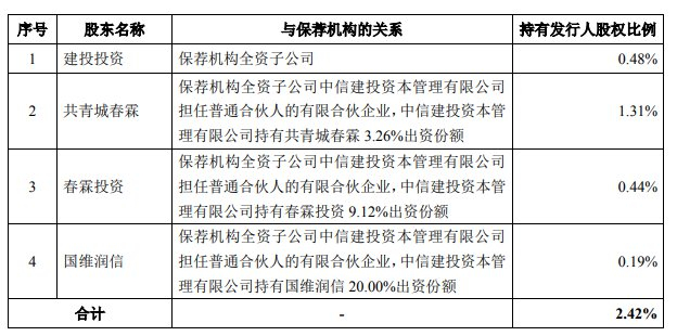据招股书,歌尔微保荐机构中信建投通过全资子公司建投投资及中信建投资本管理有限公司享有发行人的权益。