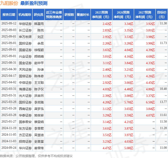 国金证券股份有限公司赵中平,王刚,蔡润泽近期对九阳股份进行研究并发布了研究报告《收入降幅收窄,期待盈利修复》,给予九阳股份增持评级。