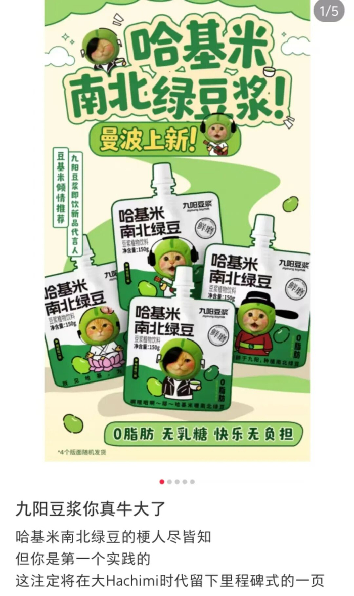 此前11月11日,九阳豆浆推出哈基米南北绿豆浆引发市场热议。