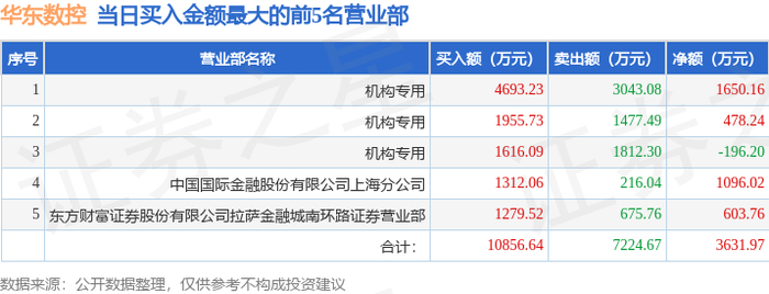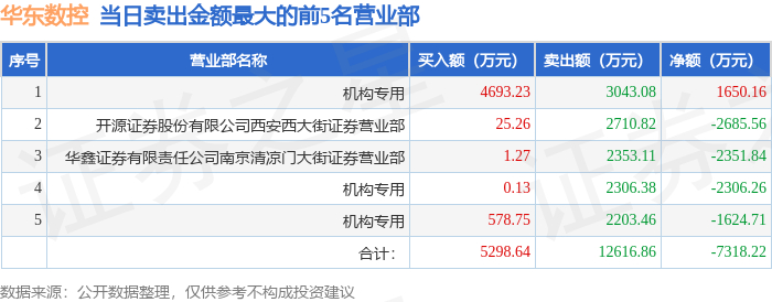 10月31日华东数控(002248)龙虎榜数据:机构净卖出1998.78万元