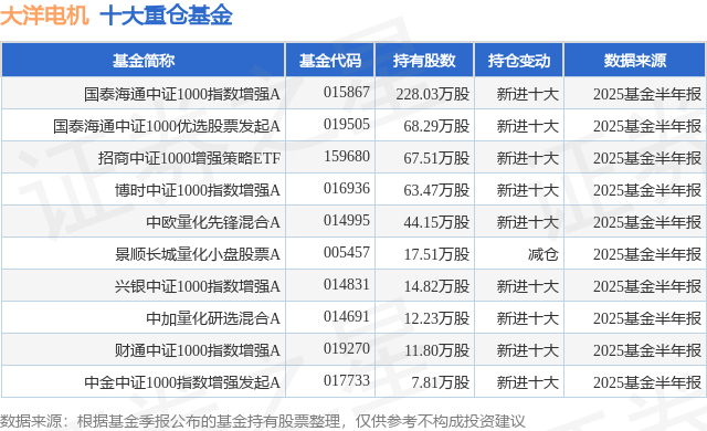 重仓大洋电机的前十大公募基金请见下表:
