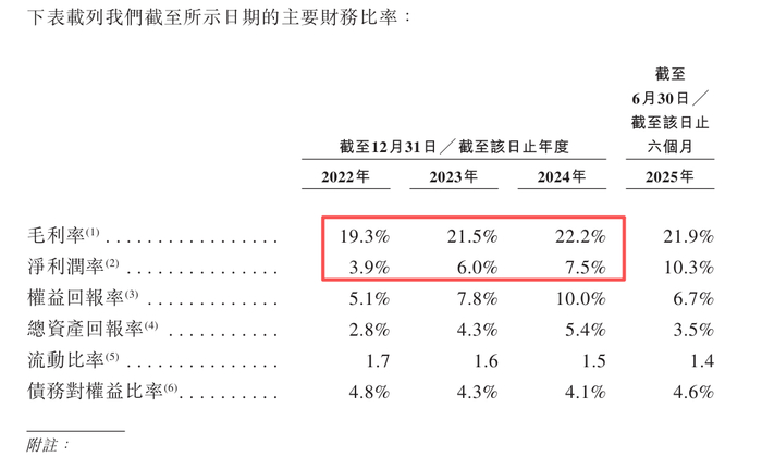 这是因为大洋电机实现了毛利率、净利率的稳步提升所致。2022至2024年,大洋电机的毛利率分别为19.3%、21.5%、22.2%,领先的市场地位以及多元化的业务布局推动了大洋电机毛利率的持续提升,在此基础上,叠加运营效率的逐渐改善使得净利率从3.9%提升至了7.5%,2025年上半年进一步提升至了10.3%。