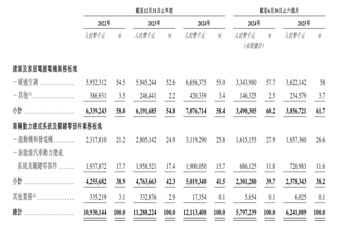 据招股书显示,建筑及家居电器电机业务板块作为大洋电机的传统业务板块,发挥着“压舱石”的作用,2022至2024年,该业务占大洋电机总收入的比例分别为58%、54.8%、58.4%,其中又以暖通空调产品收入为核心,同期内占总收入的比例分别为54.5%、52.6%、55%。