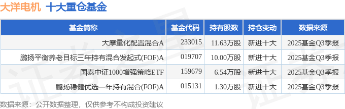 持有大洋电机最多的基金为大摩量化配置混合A,目前规模为0.82亿元,最新净值1.182(10月29日),较上一交易日上涨0.25%,近一年上涨9.55%。该基金现任基金经理为余斌。