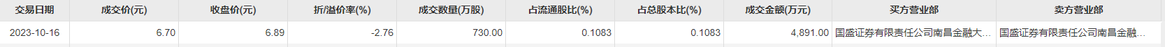 10月16日,上海莱士今日大宗交易成交730万股,成交额4891万元,占当日总成交额的17.67%,成交价6.7元,较市场收盘价折价2.76%。