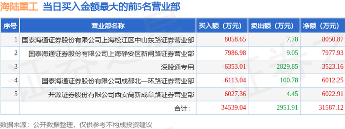 证券之星消息,沪深交易所2025年11月19日公布的交易公开信息显示,海陆重工(002255)因日涨幅偏离值达到7%的前5只证券登上龙虎榜。此次是近5个交易日内第5次上榜。