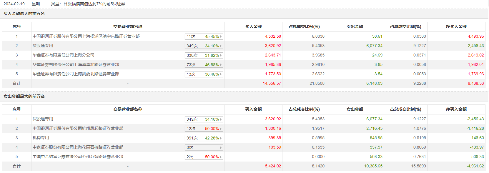 2月19日,拓维信息今日涨停,龙虎榜数据显示,上榜营业部席位全天成交2.68亿元,占当日总成交金额比例为40.25%。其中,买入金额为1.64亿元,卖出金额为1.05亿元,合计净买入5903.34万元。