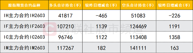 四大期指主力合约中,IF、IC、IM合约多空双方均加仓,IC合约空头加仓数量较多。