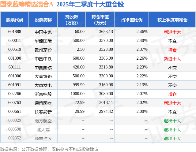 根据2025基金半年报公募基金重仓股数据,重仓该股的公募基金共3家,其中持有数量最多的公募基金为国泰基金的国泰蓝筹精选混合A。国泰蓝筹精选混合A目前规模为12.53亿元,最新净值1.3163(9月30日),较上一交易日上涨0.17%,近一年上涨14.2%。该公募基金现任基金经理为张容赫。张容赫在任的基金产品包括:国泰央企改革股票A,管理时间为2023年6月7日至今,期间收益率为22.68%;国泰招享添利六个月持有混合发起A,管理时间为2024年1月9日至今,期间收益率为10.79%;国泰启明回报混合,管理时间为2025年9月26日至今,期间收益率为-0.12%。
