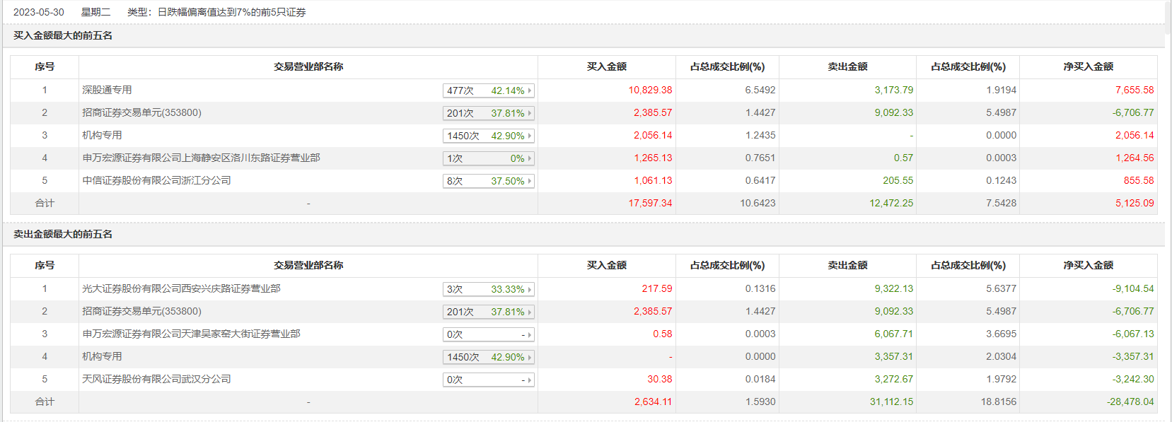 具体来看,机构买入2056.14万元,卖出3357.31万元,合计净卖出1301.16万元。此外,光大证券西安兴庆路证券营业部、招商证券交易单元(353800)分别卖出9322.13万元、9092.33万元;深股通专用、招商证券交易单元(353800)分别买入1.08亿元、2385.57万元。