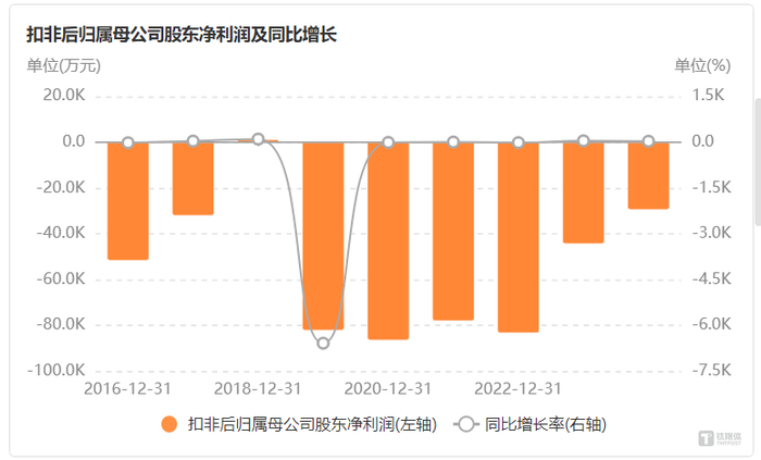 控股股东不惜“割肉”输血的背后,是美邦服饰业绩持续萎靡的冷酷现实。纵观其近年财报,公司自2019年起便陷入亏损困境,截至2024年底扣非净利润已连续六年为负,累计亏损额巨大,自我造血能力堪忧。