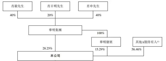 此次递表前,肖毅、肖申、肖日明三人,通过华明集团合共持有华明装备3.9亿股(其中1.37亿股A股由华明发展持有),约占公司股东会投票权的43.54%。