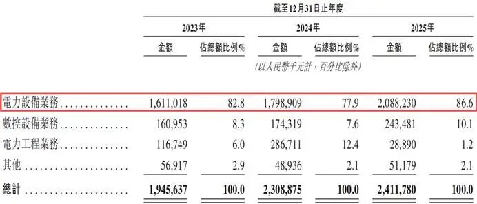 超八成收入靠电力设备业务