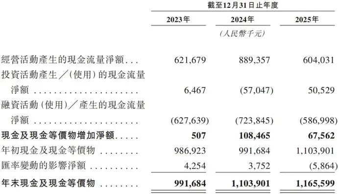 同期,该公司的现金及现金等价物,分别为9.917亿元、11.039亿元及11.656亿元,包括银行现金及手头现金。