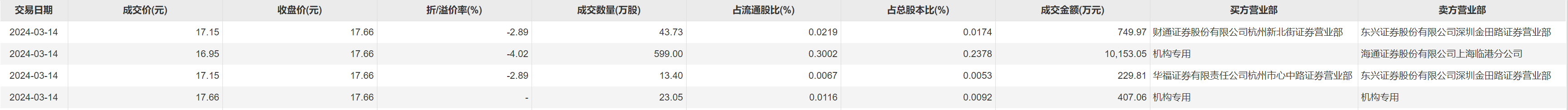 东方雨虹3月14日大宗交易成交679.18万股,成交额1.15亿元,占当日总成交额的7.31%,成交均价16.99元,较市场收盘价17.66元折价3.79%,其中最高成交价17.66元,最低成交价16.95元。