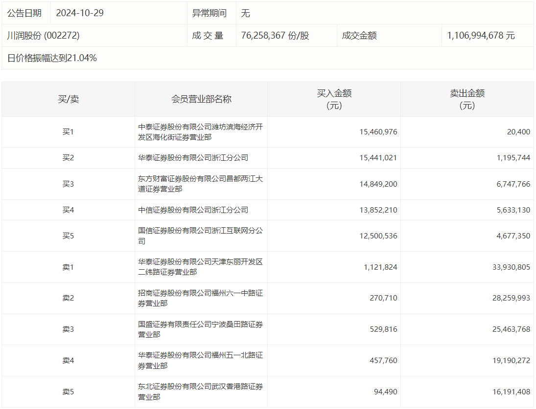 川润股份今日跌2.58%,龙虎榜数据显示,上榜营业部席位全天成交2.16亿元,占当日总成交金额比例为19.5%。其中,买入金额为7457.85万元,卖出金额为1.41亿元,合计净卖出6673.21万元。