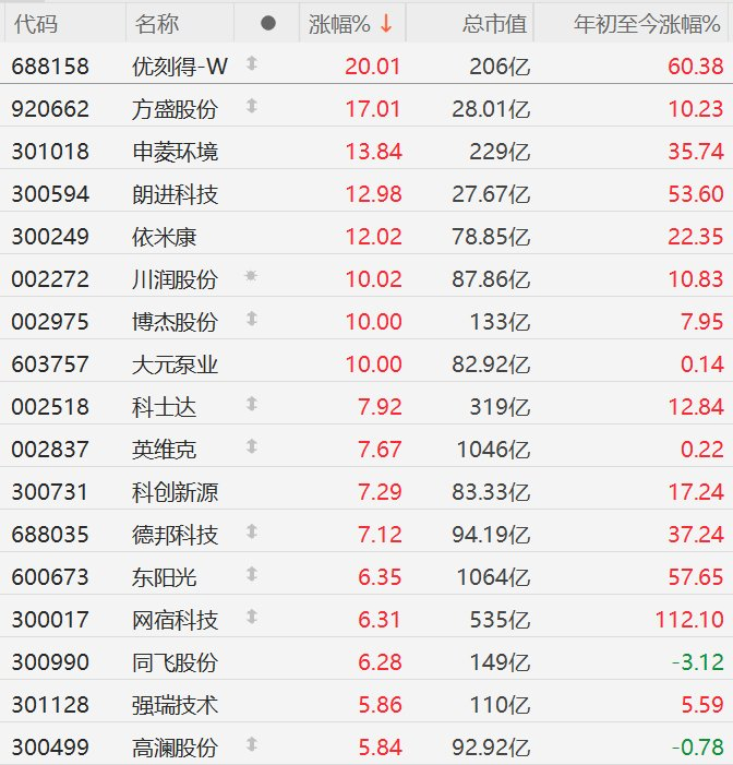 格隆汇2月12日|A股市场液冷概念股集体走强,其中,方盛股份涨17%,申菱环境涨超13%,朗进科技、依米康涨超12%,川润股份、博杰股份、大元泵业10CM涨停,科士达、英维克、科创新源、德邦科技涨超7%,东阳光、网宿科技、同飞股份涨超6%。