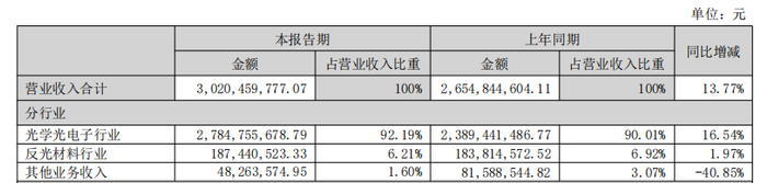 目前,水晶光电营收主要来源于消费电子的光学元器件、薄膜光学面板,二者营收占比超90%,是绝对的业绩支柱。