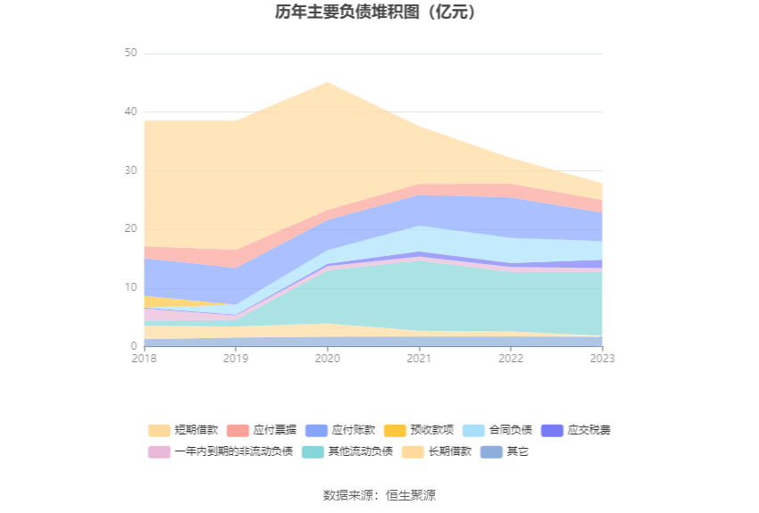 负债重大变化方面,截至2023年年末,公司应付账款较上年末减少29.56%,占公司总资产比重下降2.48个百分点;短期借款较上年末减少35.67%,占公司总资产比重下降1.89个百分点;合同负债较上年末减少25.87%,占公司总资产比重下降1.34个百分点;其他流动负债较上年末增加7.63%,占公司总资产比重上升0.90个百分点。