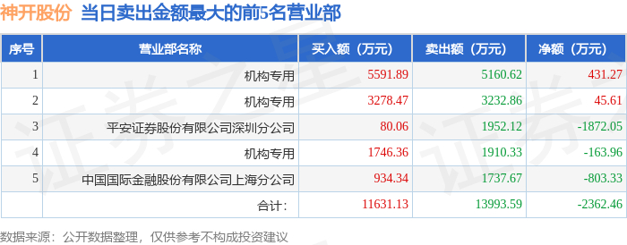 1月13日神开股份(002278)龙虎榜数据:机构净买入312.92万元